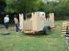 Ed and a MiniBum full of camping goodies. The Spagley multifunction utility trailer undergoing a radical transformation. Many thanks to Paul (I've got one of those in the van) Dunk for his endless supply of power tools and materials :-) Spot of 'orse surgery. Testing the castle and certainly not looking like rejects from an infant school play! Castle or 12th century caravan ? (Note fetching portcullis wheel arches) Now with authentic 'brick' detail.